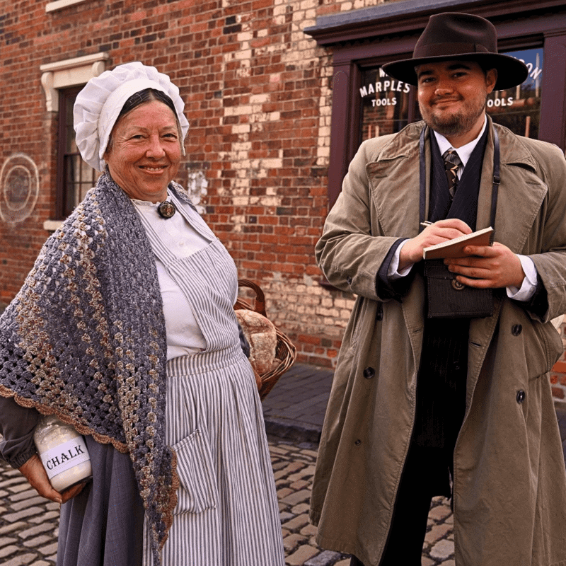 Start your journey along cobbled roads lined with vintage storefronts: the 1930s butchers, the sweet shop with jars stacked high, the friendly chemist, the schoolroom ready for lessons. Everywhere you turn, costumed characters bring the stories of the past to life — miners heading to work, chain-makers hammering steel, shopkeepers calling out to customers. Chat with them and you’ll uncover real tales of the Black Country’s proud industrial roots.